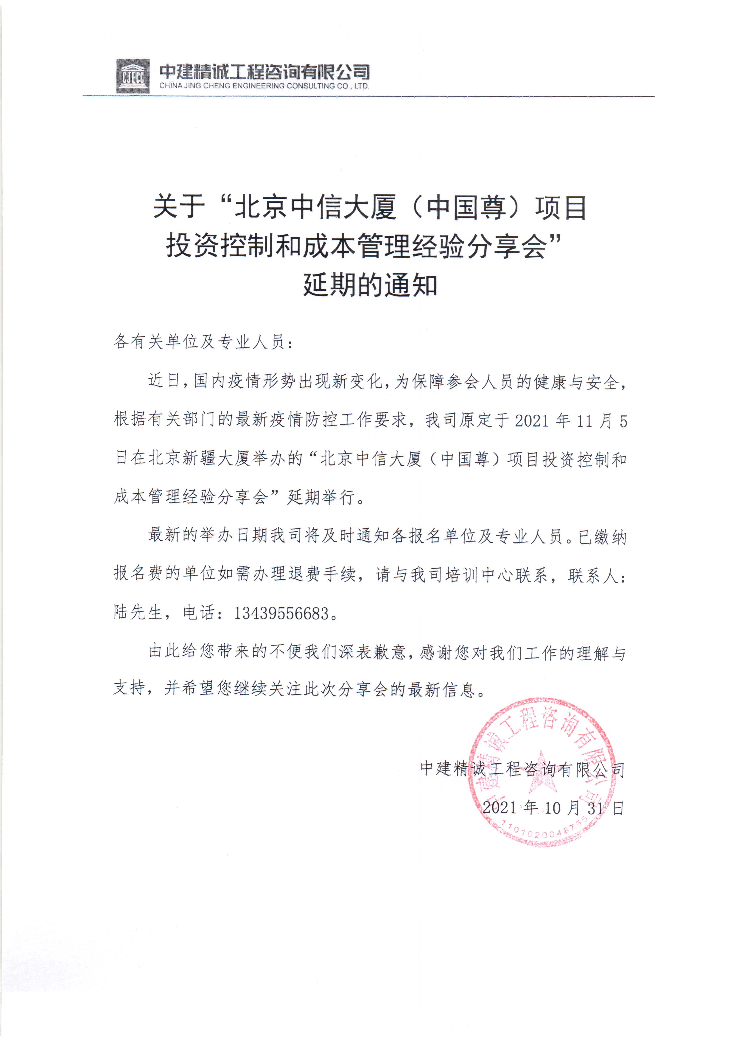 下一篇:關(guān)于舉辦“北京中信大廈(中國(guó)尊) 項(xiàng)目投資控制和成本管理經(jīng)驗(yàn)分享會(huì)”的通知